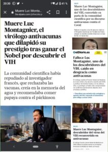 La muerte del gran Montagnier debería ser noticia de primera plana. Me dais asco, pero también pena porque teniéndolo todo elegisteis el camino de la oscuridad, de lo peor del ser humano.