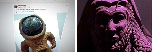 El 26 de abril de 2021, un usuario de Facebook compartió una imagen de una supuesta «figurilla de tres mil años que fue encontrada en Capadocia», sin revelar datos adicionales. La imagen rapidamente se hizo popular y evocó inmediatamente las nociones de los antiguos astronautas.