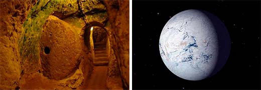 Según los textos sagrados, Yima, el profeta de Ahura Mazda, hizo construir una ciudad subterránea de varios pisos para proteger a un grupo selecto de personas y animales de una era de hielo global, que el veda los llama los inviernos malignos.
